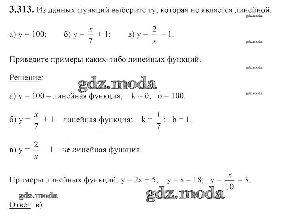 ОТВЕТ на задание № 3.313 Учебник по Алгебре 7 класс Арефьева
