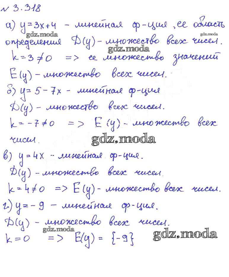 ОТВЕТ на задание № 3.318 Учебник по Алгебре 7 класс Арефьева