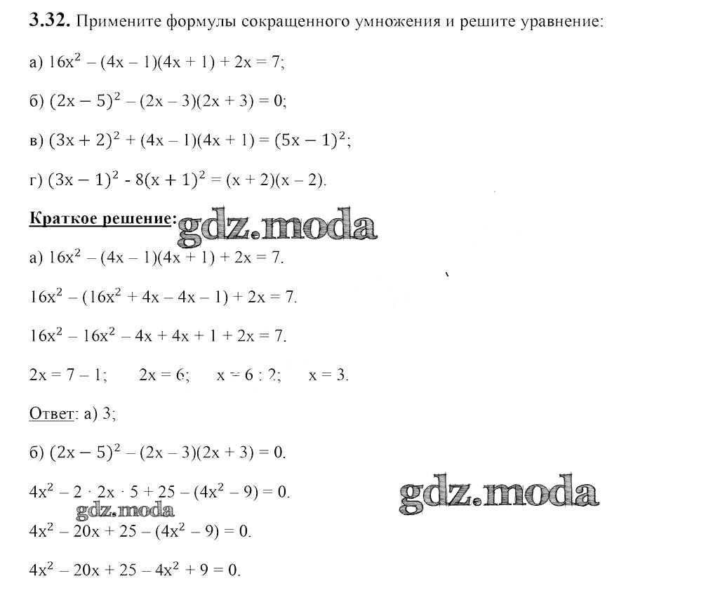 ОТВЕТ на задание № 3.32 Учебник по Алгебре 7 класс Арефьева