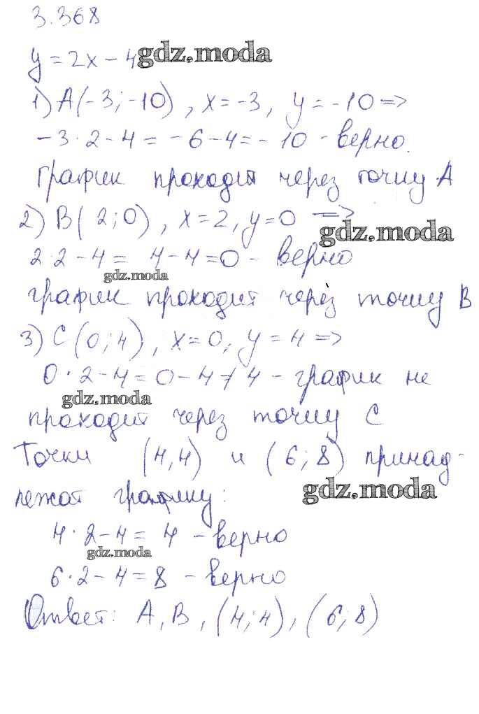 ОТВЕТ на задание № 3.368 Учебник по Алгебре 7 класс Арефьева