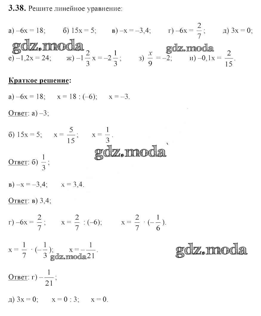 ОТВЕТ на задание № 3.38 Учебник по Алгебре 7 класс Арефьева
