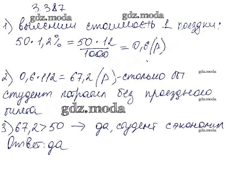 ОТВЕТ на задание № 3.387 Учебник по Алгебре 7 класс Арефьева