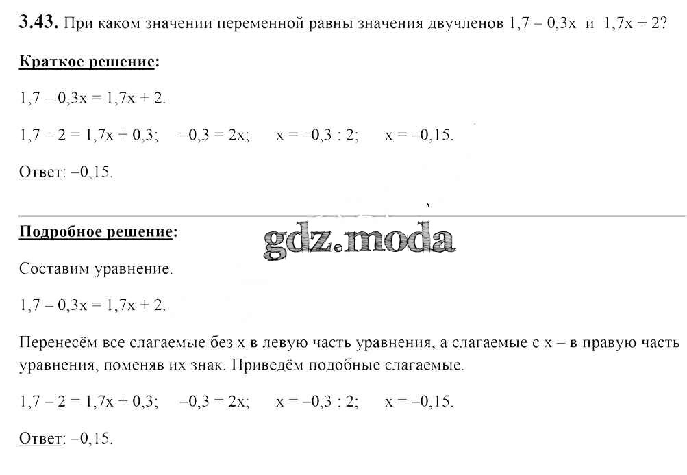 ОТВЕТ на задание № 3.43 Учебник по Алгебре 7 класс Арефьева