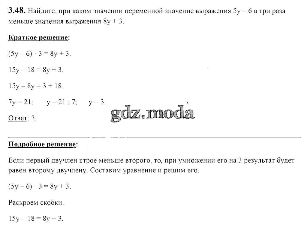ОТВЕТ на задание № 3.48 Учебник по Алгебре 7 класс Арефьева