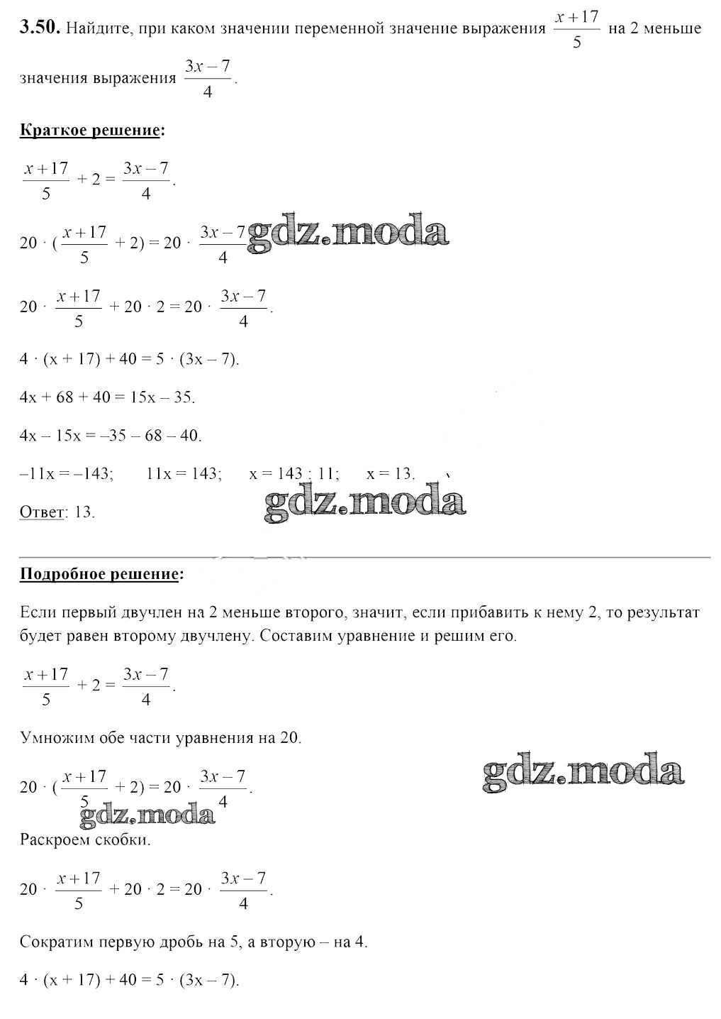ОТВЕТ на задание № 3.50 Учебник по Алгебре 7 класс Арефьева