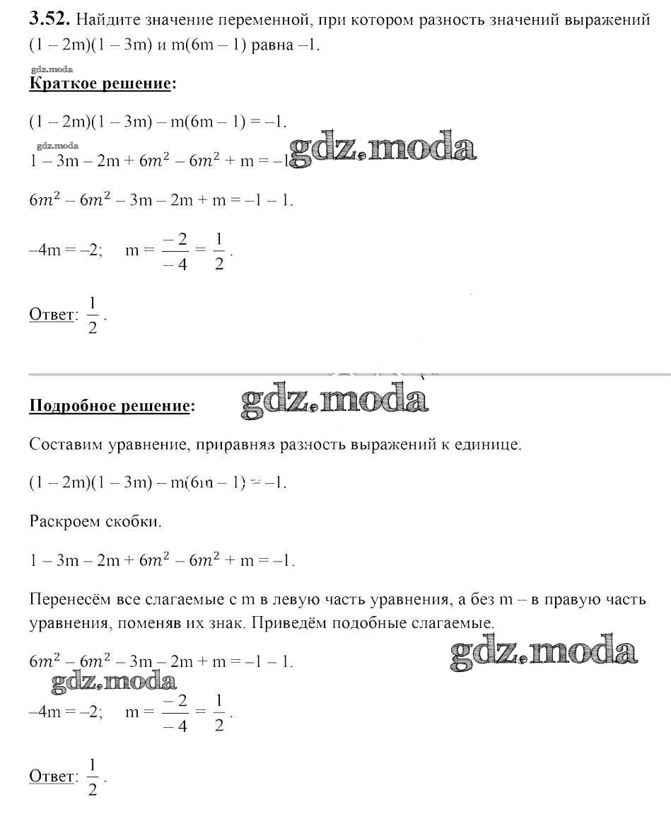 ОТВЕТ на задание № 3.52 Учебник по Алгебре 7 класс Арефьева