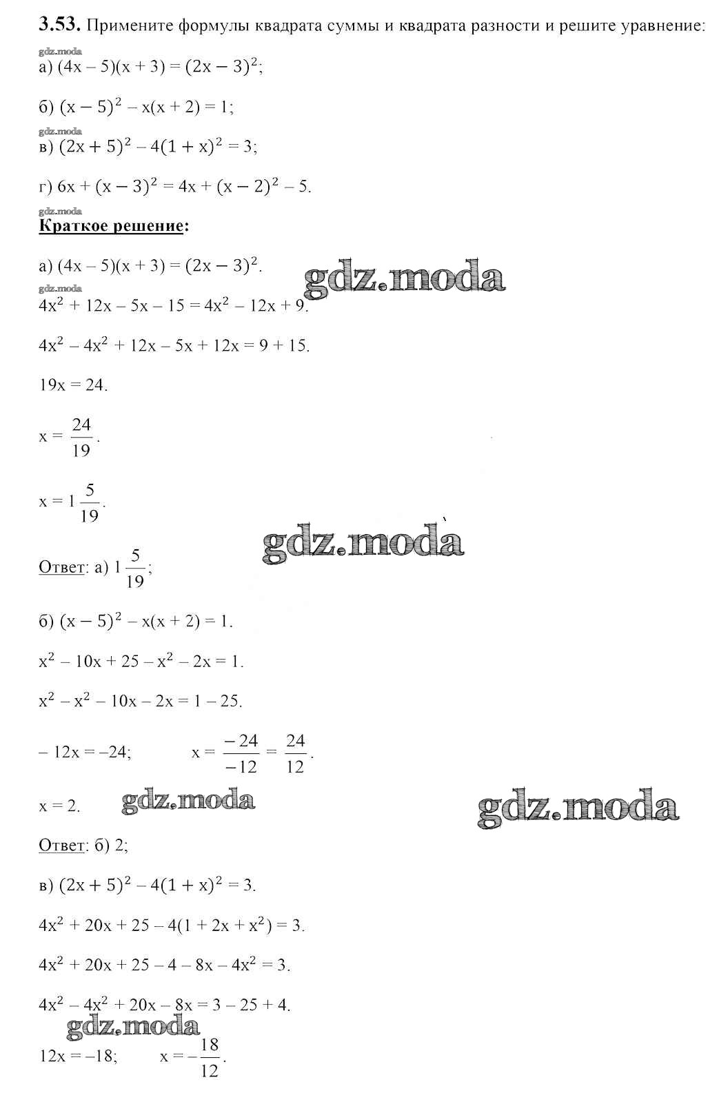 ОТВЕТ на задание № 3.53 Учебник по Алгебре 7 класс Арефьева