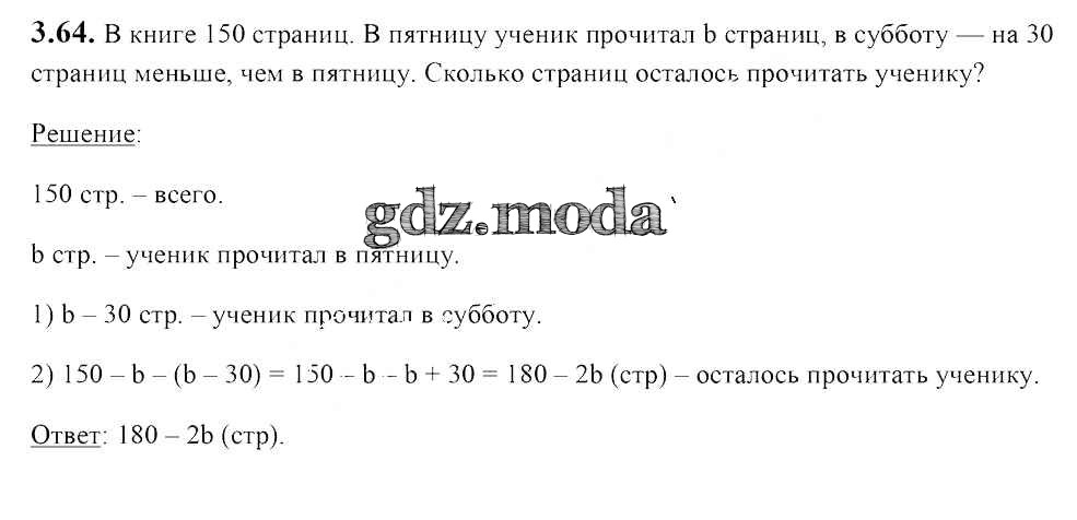 ОТВЕТ на задание № 3.64 Учебник по Алгебре 7 класс Арефьева