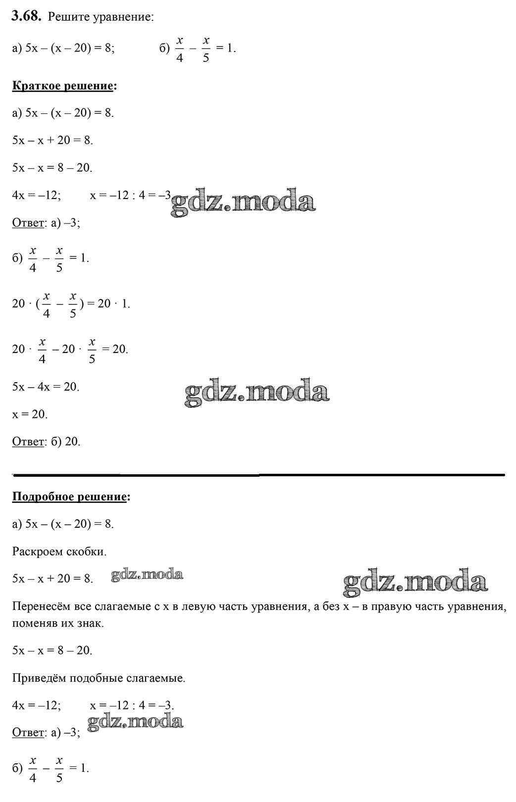 ОТВЕТ на задание № 3.68 Учебник по Алгебре 7 класс Арефьева