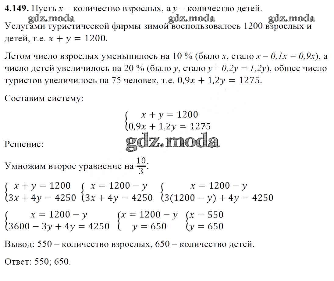 ОТВЕТ на задание № 4.149 Учебник по Алгебре 7 класс Арефьева