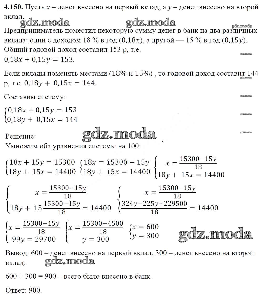 ОТВЕТ на задание № 4.150 Учебник по Алгебре 7 класс Арефьева