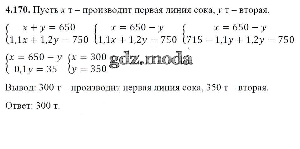 ОТВЕТ на задание № 4.170 Учебник по Алгебре 7 класс Арефьева