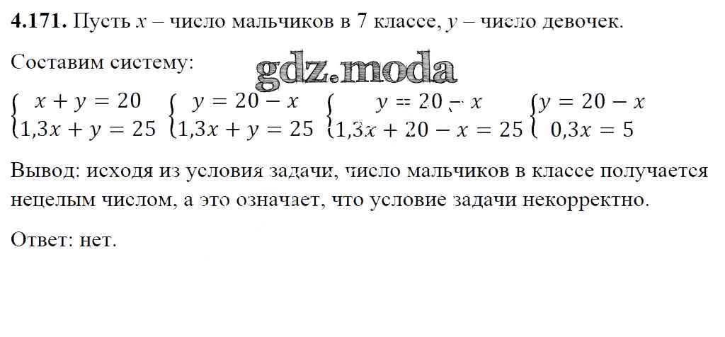 ОТВЕТ на задание № 4.171 Учебник по Алгебре 7 класс Арефьева