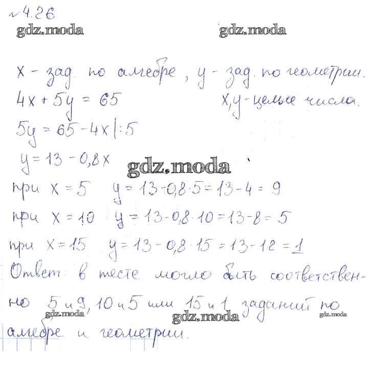 ОТВЕТ на задание № 4.26 Учебник по Алгебре 7 класс Арефьева