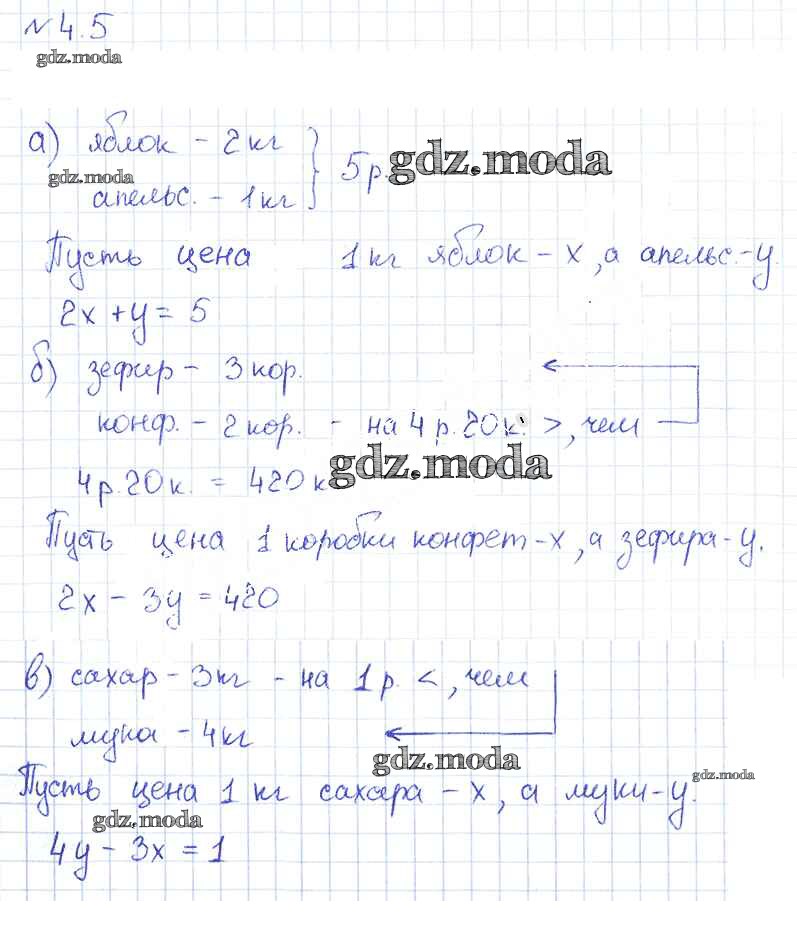 ОТВЕТ на задание № 4.5 Учебник по Алгебре 7 класс Арефьева
