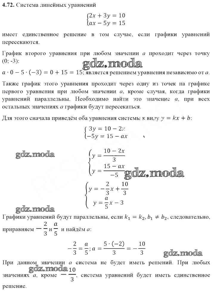 ОТВЕТ на задание № 4.72 Учебник по Алгебре 7 класс Арефьева