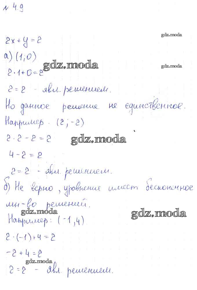 ОТВЕТ на задание № 4.9 Учебник по Алгебре 7 класс Арефьева