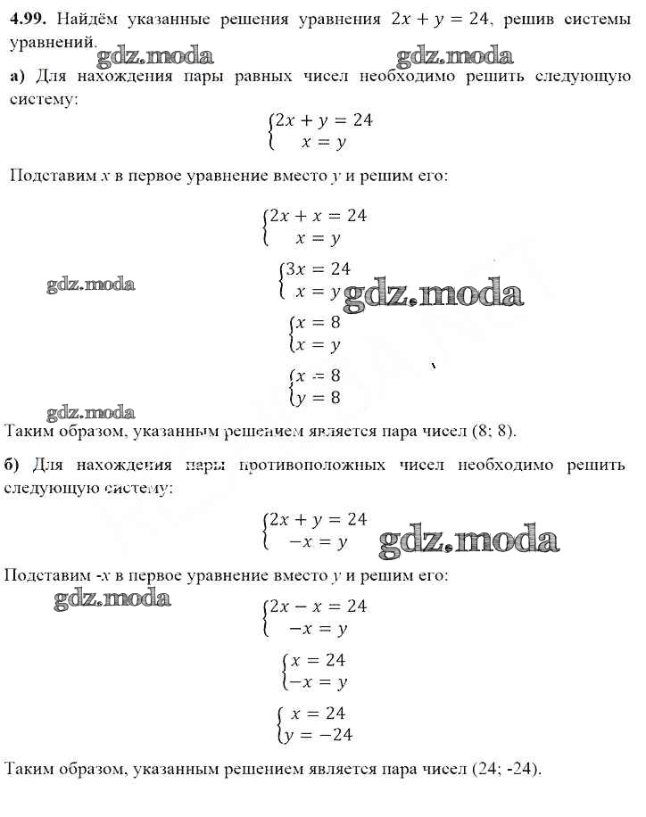 ОТВЕТ на задание № 4.99 Учебник по Алгебре 7 класс Арефьева