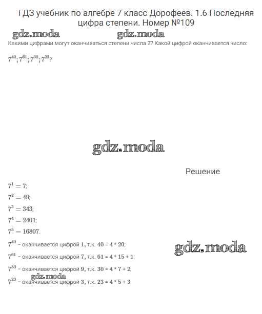 ОТВЕТ на задание № 109 Учебник по Алгебре 7 класс Дорофеев Академический школьный учебник