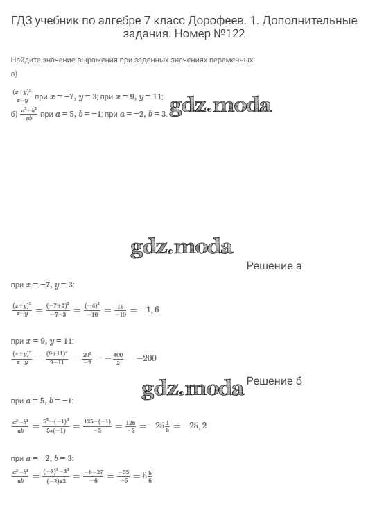 ОТВЕТ на задание № 122 Учебник по Алгебре 7 класс Дорофеев Академический школьный учебник