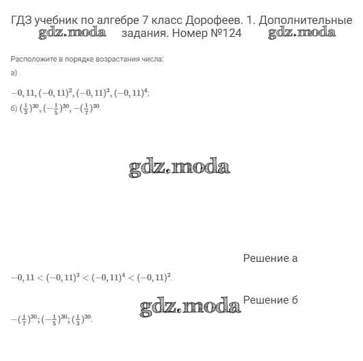 ОТВЕТ на задание № 124 Учебник по Алгебре 7 класс Дорофеев Академический школьный учебник