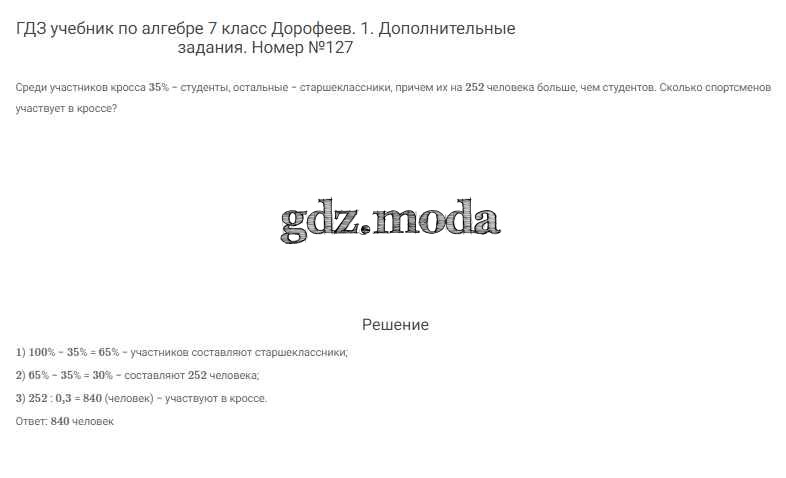 ОТВЕТ на задание № 127 Учебник по Алгебре 7 класс Дорофеев Академический школьный учебник