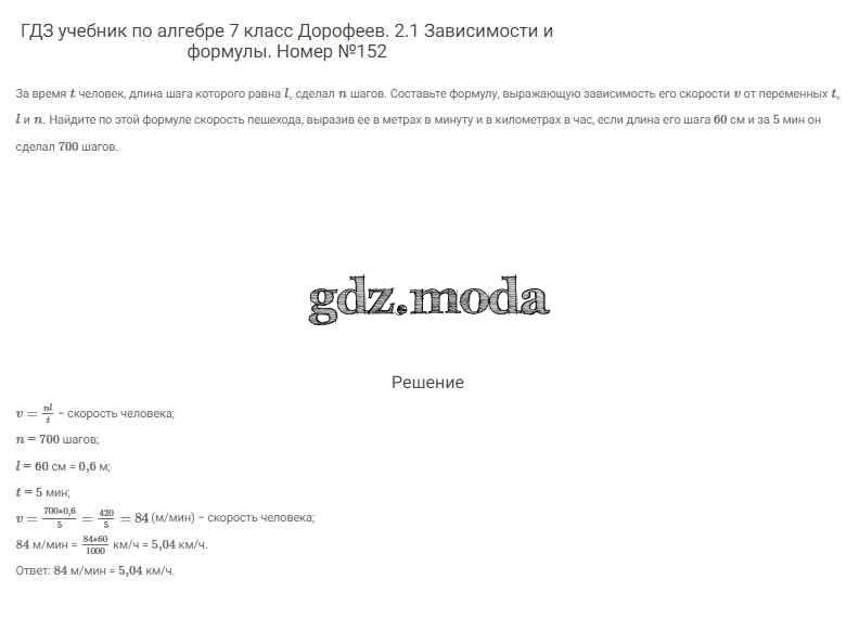 ОТВЕТ на задание № 152 Учебник по Алгебре 7 класс Дорофеев Академический школьный учебник