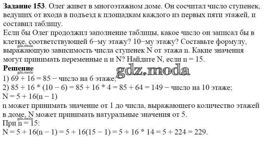 ОТВЕТ на задание № 153 Учебник по Алгебре 7 класс Дорофеев Академический школьный учебник