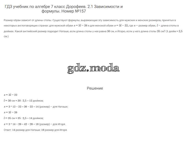 ОТВЕТ на задание № 157 Учебник по Алгебре 7 класс Дорофеев Академический школьный учебник