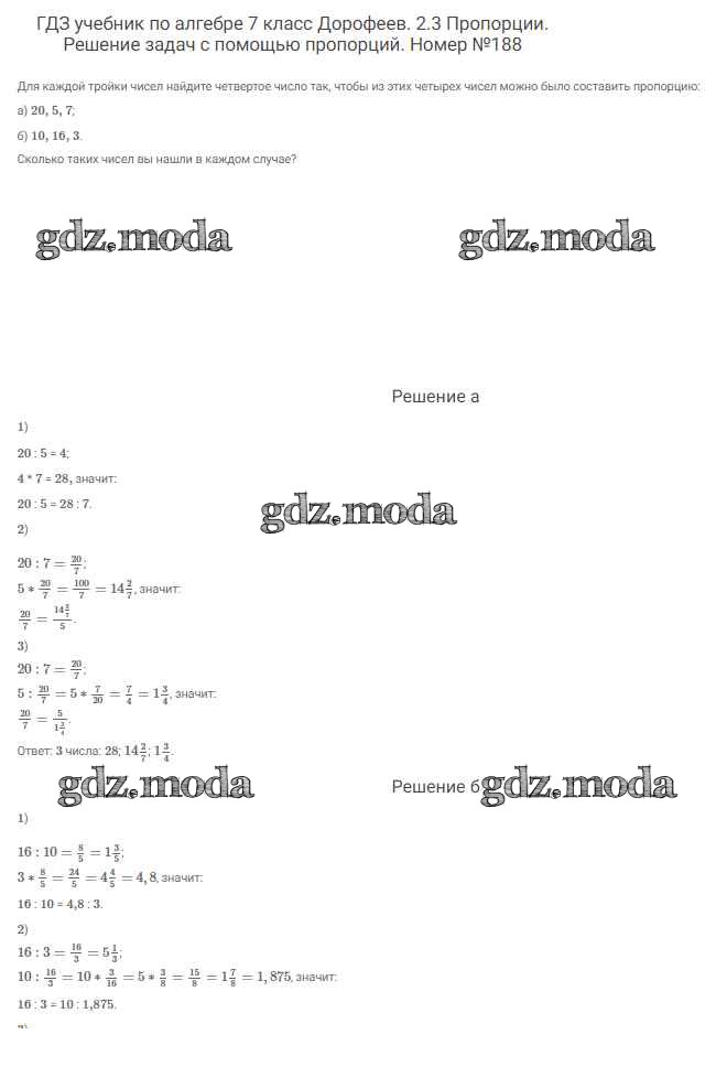 ОТВЕТ на задание № 188 Учебник по Алгебре 7 класс Дорофеев Академический школьный учебник