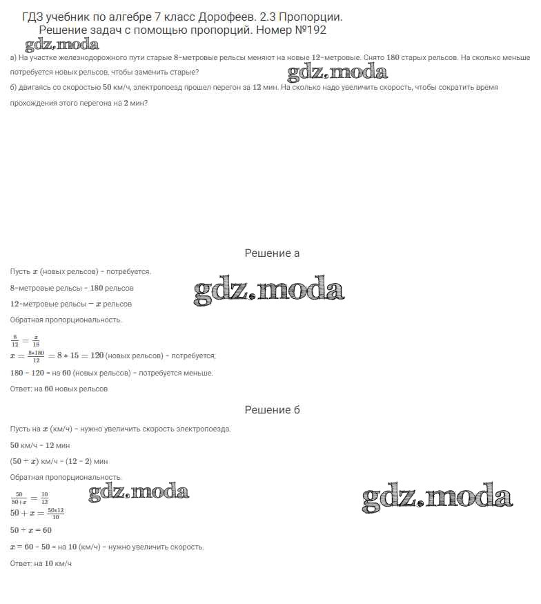 ОТВЕТ на задание № 192 Учебник по Алгебре 7 класс Дорофеев Академический школьный учебник