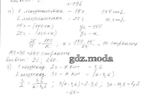 ОТВЕТ на задание № 196 Учебник по Алгебре 7 класс Дорофеев Академический школьный учебник