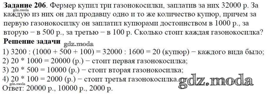 ОТВЕТ на задание № 206 Учебник по Алгебре 7 класс Дорофеев Академический школьный учебник