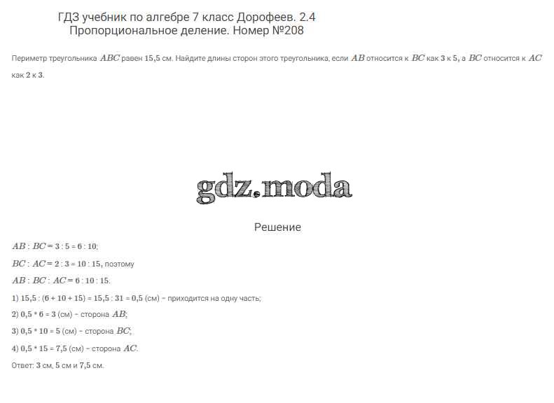ОТВЕТ на задание № 208 Учебник по Алгебре 7 класс Дорофеев Академический школьный учебник