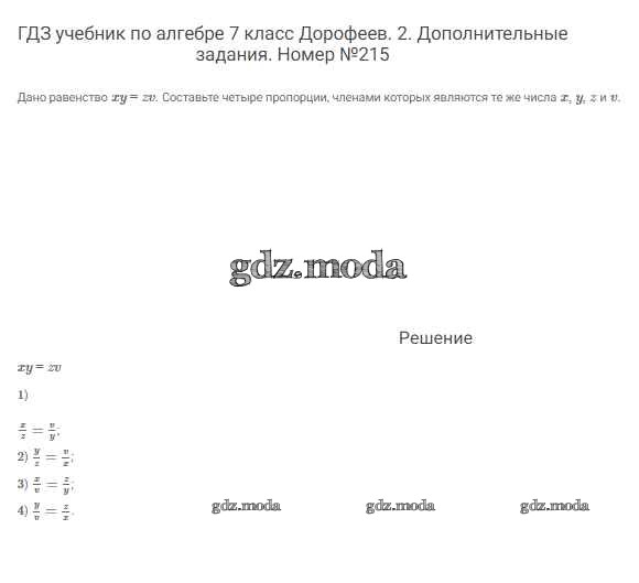 ОТВЕТ на задание № 215 Учебник по Алгебре 7 класс Дорофеев Академический школьный учебник