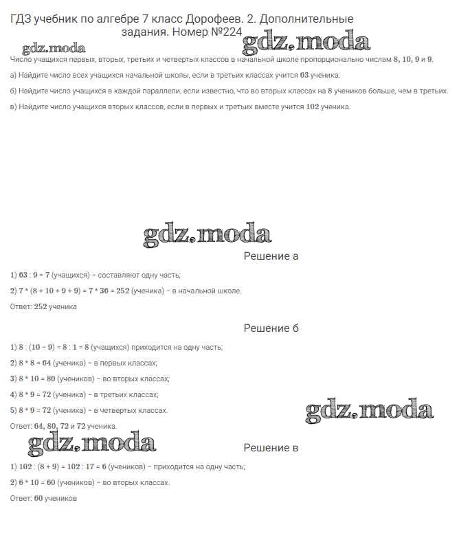ОТВЕТ на задание № 224 Учебник по Алгебре 7 класс Дорофеев Академический школьный учебник