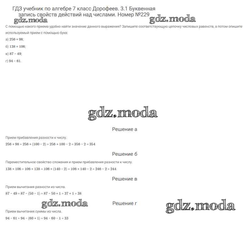 ОТВЕТ на задание № 229 Учебник по Алгебре 7 класс Дорофеев Академический школьный учебник