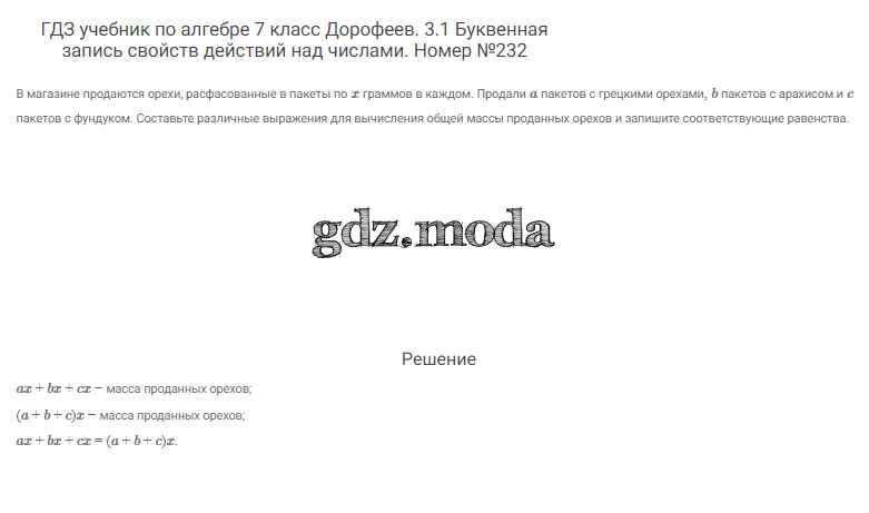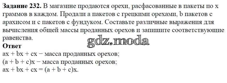 ОТВЕТ на задание № 232 Учебник по Алгебре 7 класс Дорофеев Академический школьный учебник