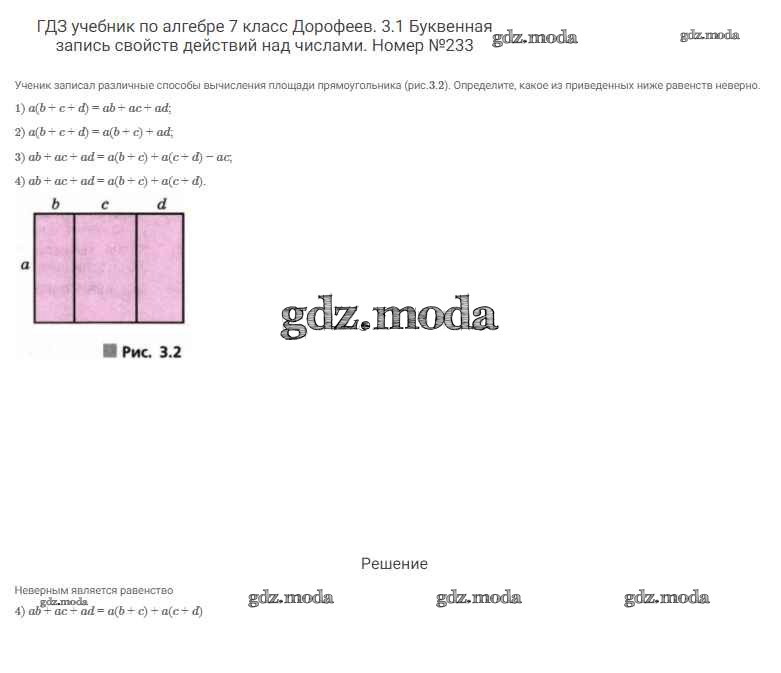 ОТВЕТ на задание № 233 Учебник по Алгебре 7 класс Дорофеев Академический школьный учебник