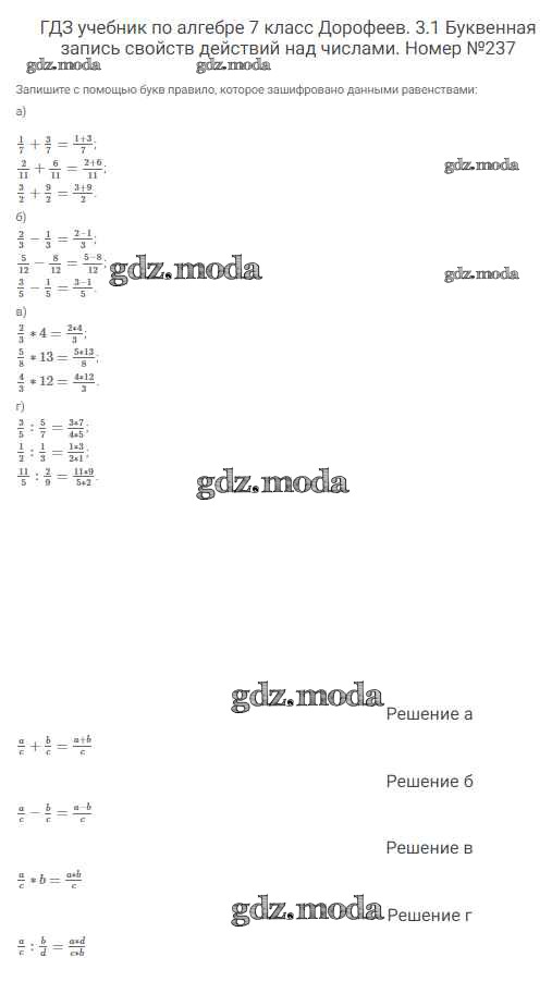 ОТВЕТ на задание № 237 Учебник по Алгебре 7 класс Дорофеев Академический школьный учебник