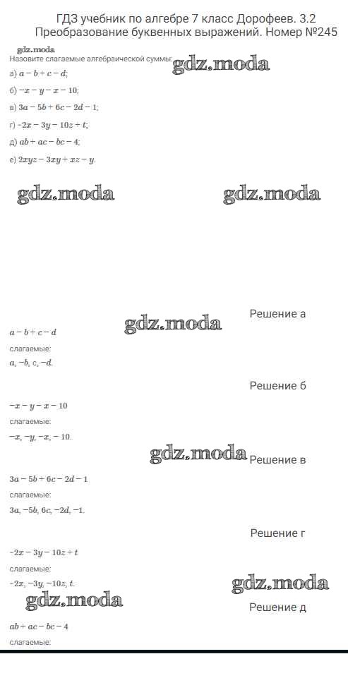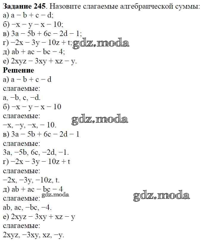 ОТВЕТ на задание № 245 Учебник по Алгебре 7 класс Дорофеев Академический школьный учебник