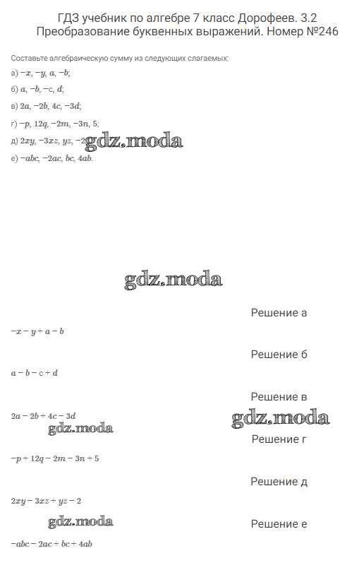 ОТВЕТ на задание № 246 Учебник по Алгебре 7 класс Дорофеев Академический школьный учебник