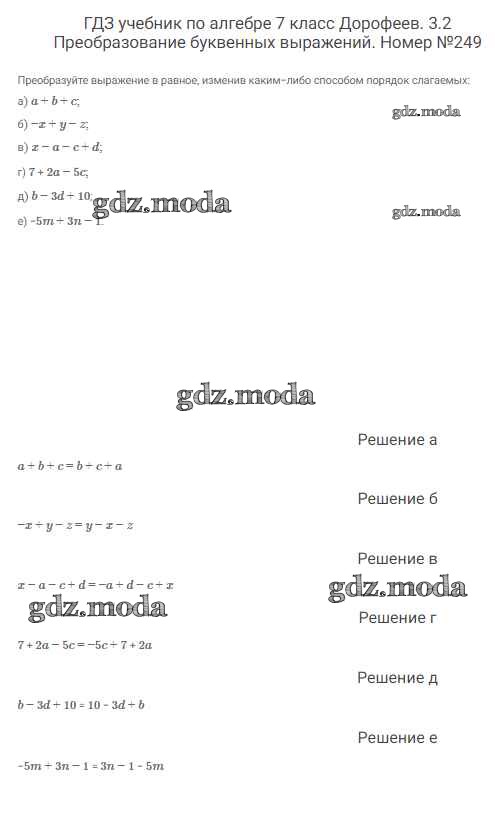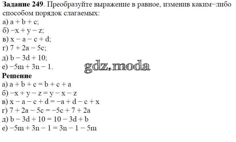 ОТВЕТ на задание № 249 Учебник по Алгебре 7 класс Дорофеев Академический школьный учебник
