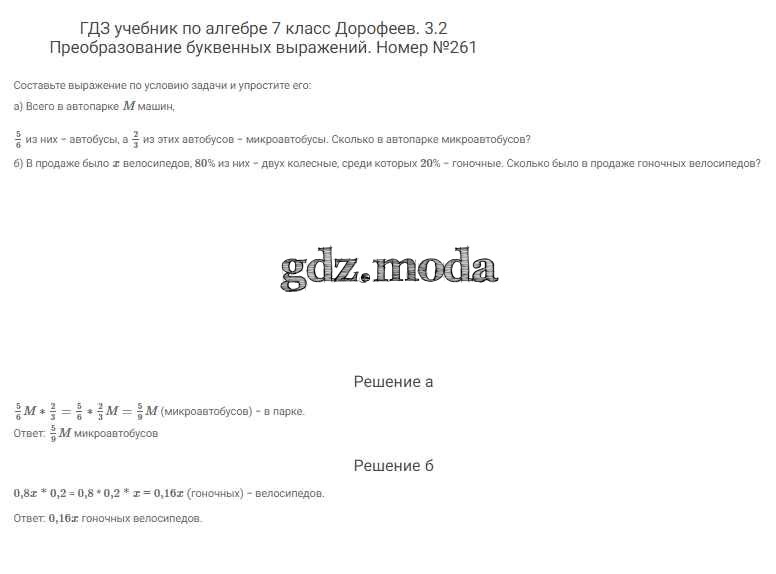 ОТВЕТ на задание № 261 Учебник по Алгебре 7 класс Дорофеев Академический школьный учебник