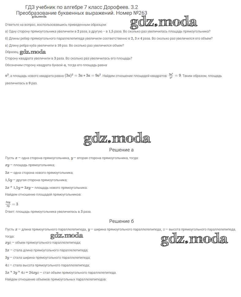 ОТВЕТ на задание № 263 Учебник по Алгебре 7 класс Дорофеев Академический школьный учебник