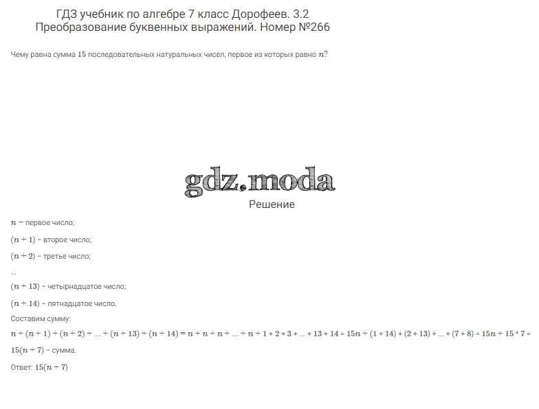 ОТВЕТ на задание № 266 Учебник по Алгебре 7 класс Дорофеев Академический школьный учебник