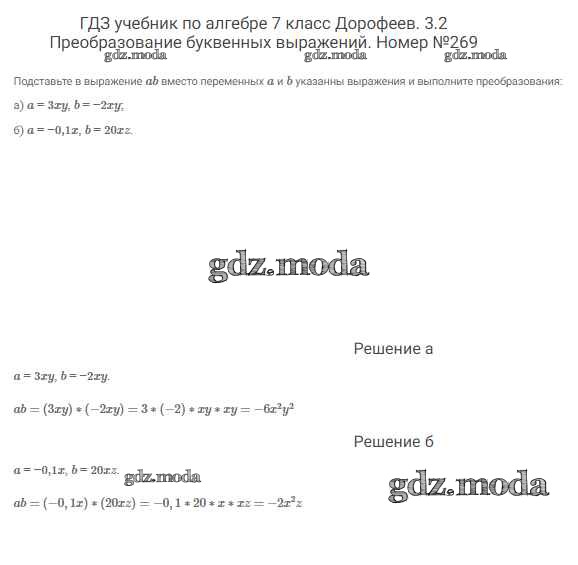 ОТВЕТ на задание № 269 Учебник по Алгебре 7 класс Дорофеев Академический школьный учебник