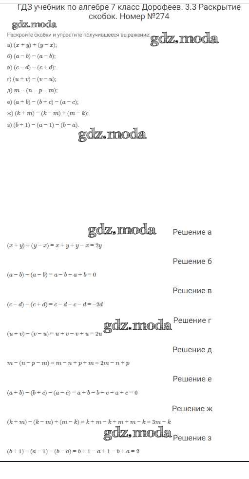 ОТВЕТ на задание № 274 Учебник по Алгебре 7 класс Дорофеев Академический школьный учебник