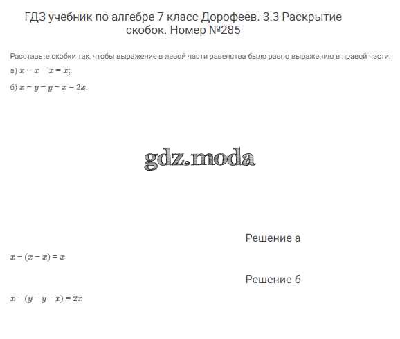 ОТВЕТ на задание № 285 Учебник по Алгебре 7 класс Дорофеев Академический школьный учебник
