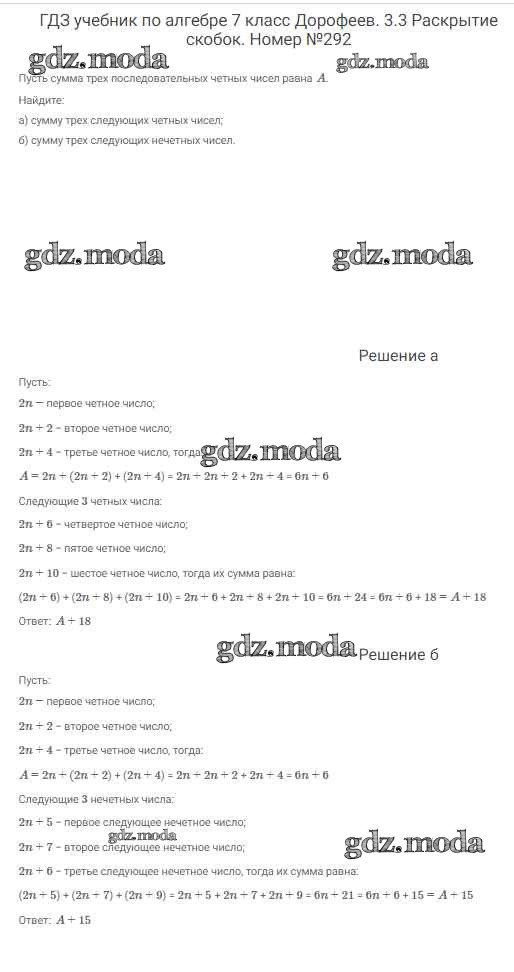 ОТВЕТ на задание № 292 Учебник по Алгебре 7 класс Дорофеев Академический школьный учебник